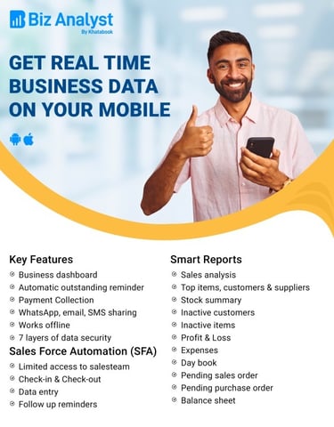 With easy access to Smart Reports like Sales analysis 📊, Top items, customers and suppliers 📑, Stock summary 📦, Inactive customers, Inactive items, and more that help you plan better business strategy 📈. Multiply your sales and profits with Biz